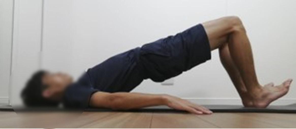 ② お尻が太ももと体が一直線になるくらいまで上にあげていきます。(2枚目の写真)