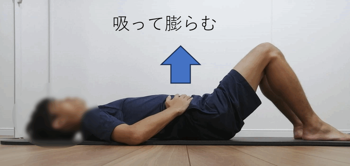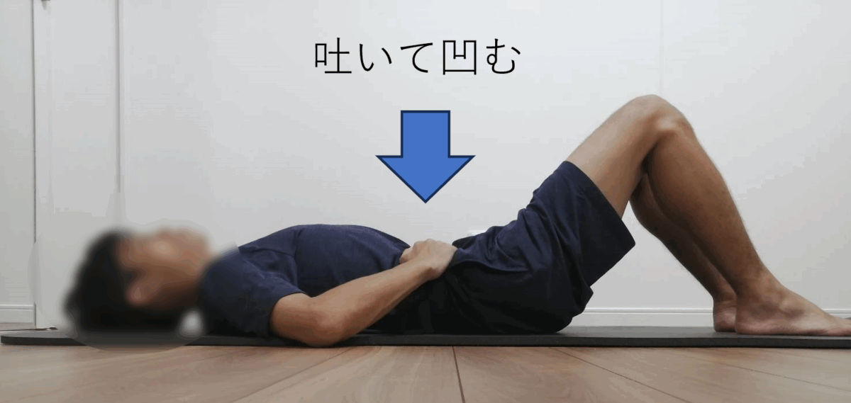 *吐くときはお腹はいきまず凹ませる意識!手でお腹の動きを確認しましょう。