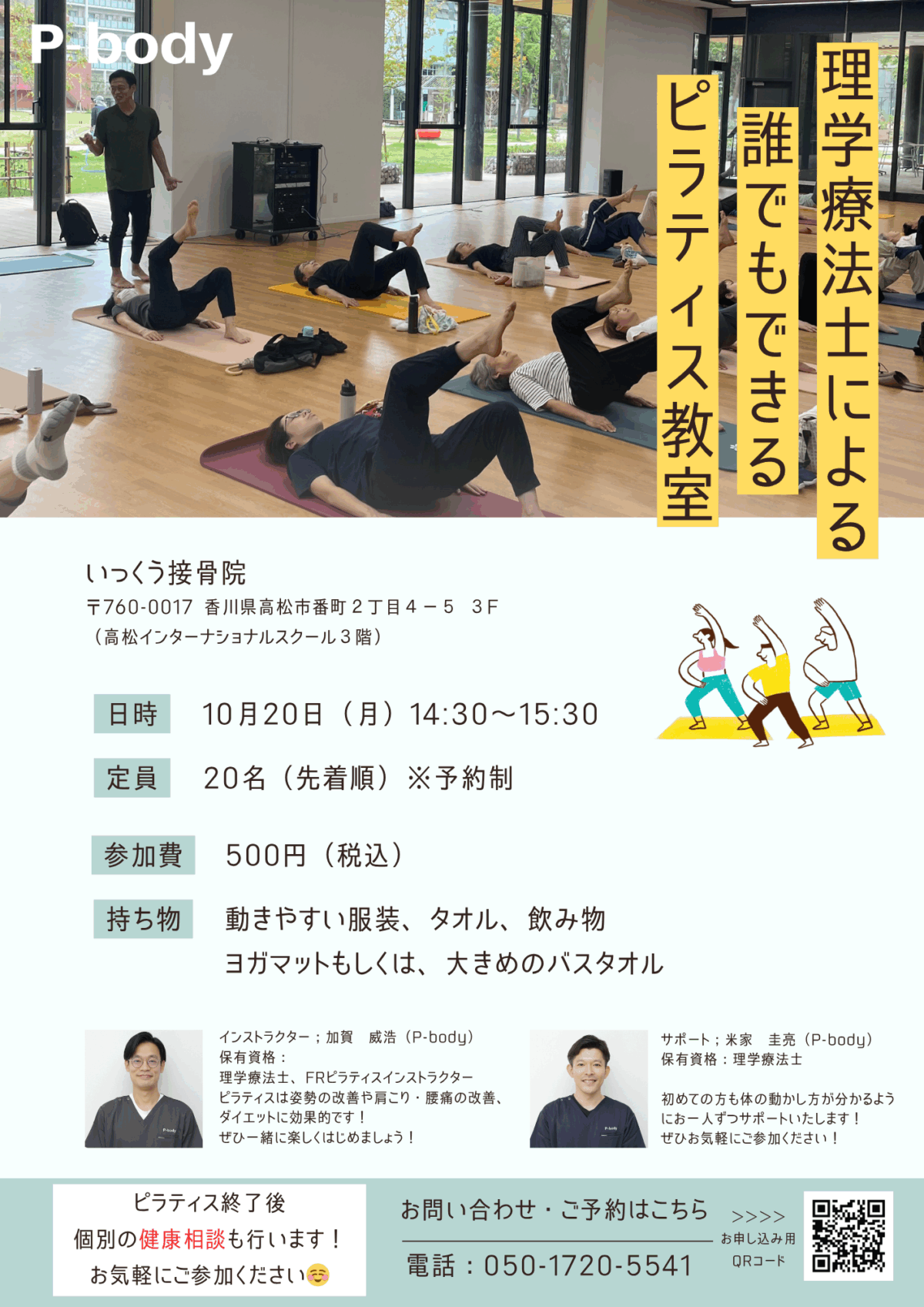 神戸で大人気の【P-bodyピラティス教室】が、ついに香川にやってきます!🕊️理学療法士が行う、やさしく安心のピラティス💪